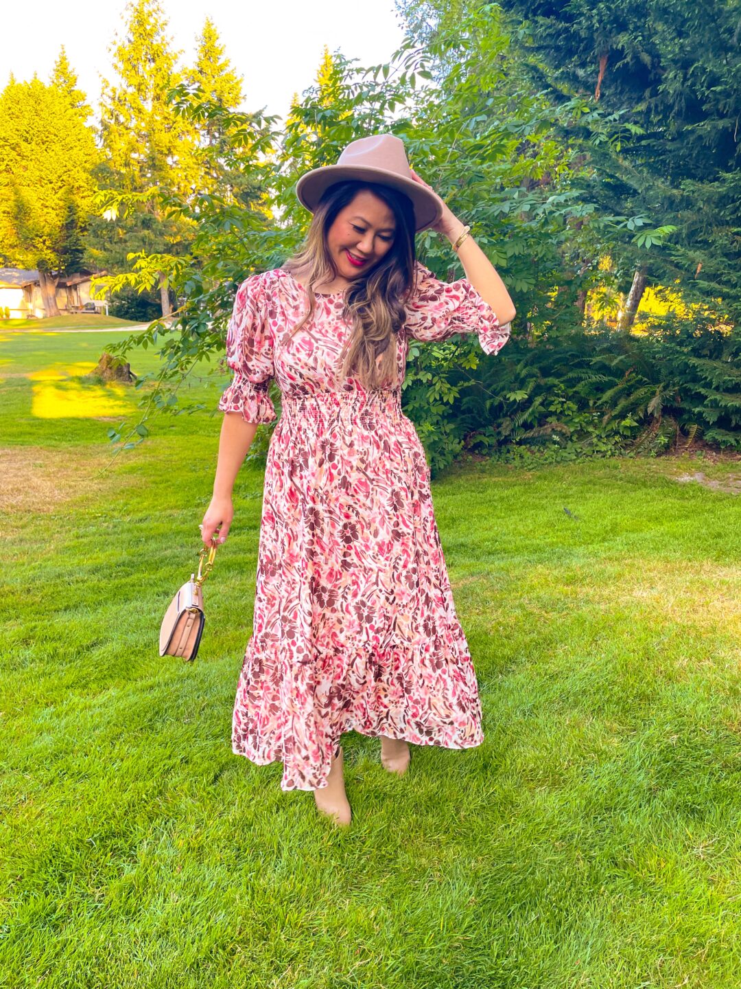 A long maxi dress is great for fall as it’s an easy way to dress up but not be cold either! This one is lightweight and has elastic at the waist so it’s easy to wear all day. I love the fall colors and the puffy sleeves.