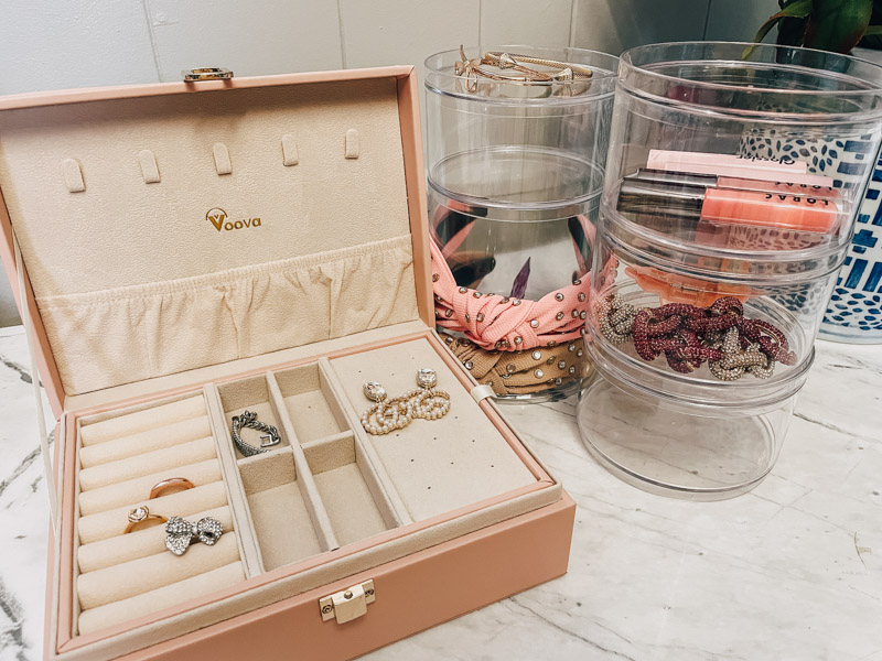 The stackable organizers are great for organizing makeup, jewelry and even your headbands!