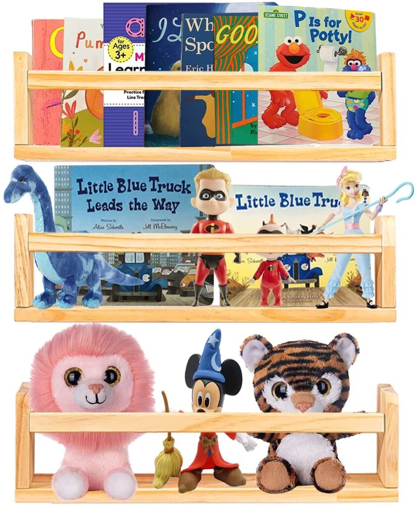 We used these floating shelves in my daughter’s room where she keeps all her favorite dolls displayed. Tip: Make sure to save all the pieces to the doll stand that come in the box to easily keep them upright!