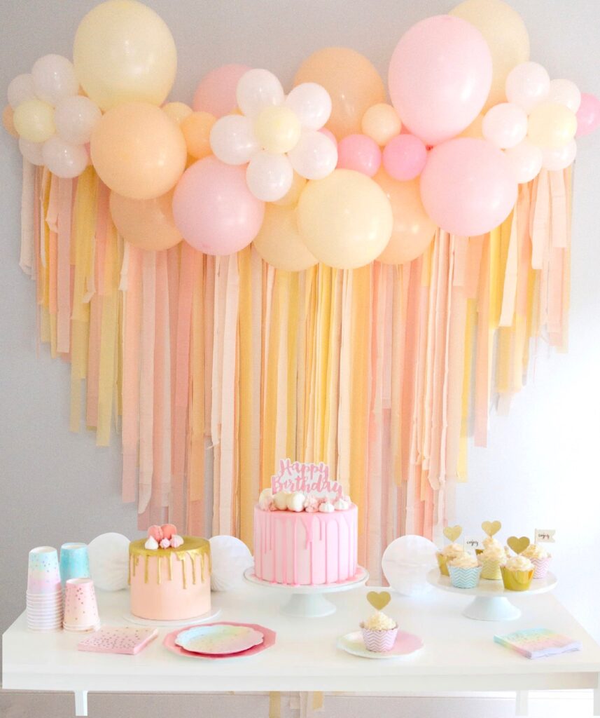 Rainbows are the sign of Spring in my mind, and the idea of a pastel rainbow arch seems to be the perfect color scheme for an easter party! This is so simple as you really just need the colors/sizes you prefer and the balloon arch kit to create this statement piece or just get this kit here that comes with everything that you need.