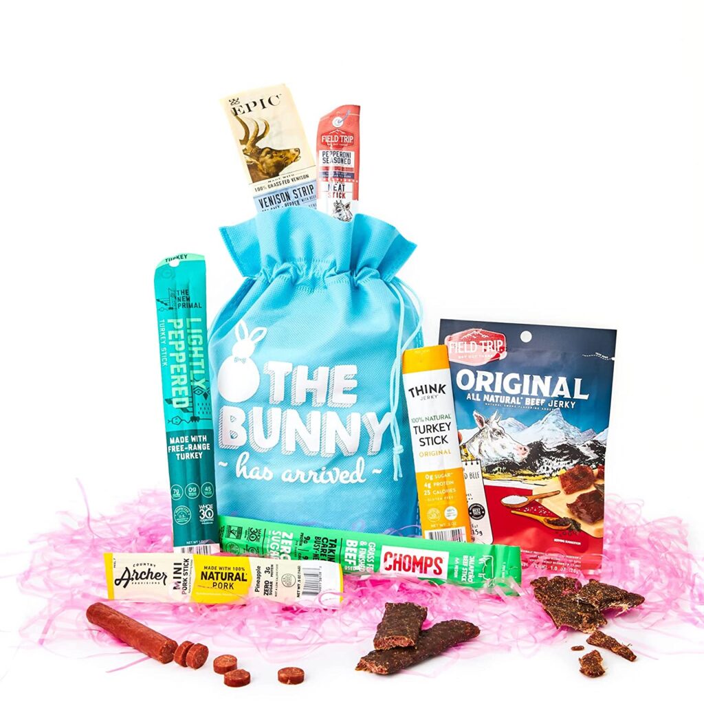 Beef Jerky Easter Bag: Looking for something quick and easy for a man who loves beef jerky, get this ready made easter gift bag with a mix of jerky and beef sticks!