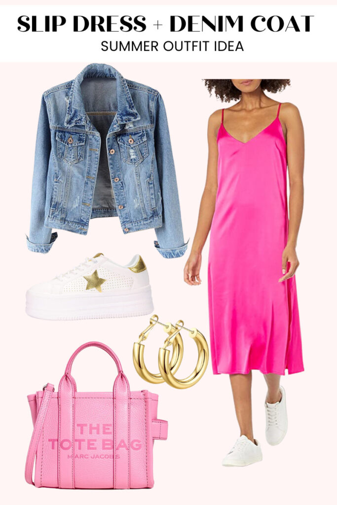 A slip dress paired with the leather moto jacket is one of my best style tips for summer days.