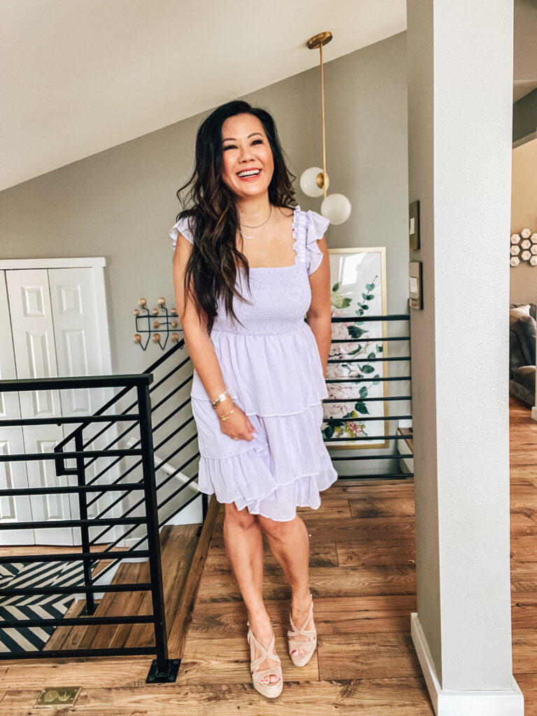 This tiered dress comes in multiple colors and is so pretty with the off shoulder silhouette.