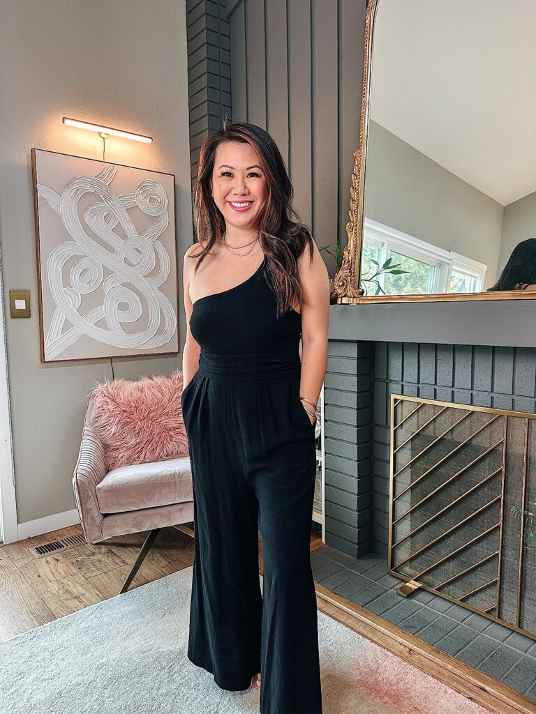 A one shoulder jumpsuit can be styled with wedges or with a pair of cute heeled sandals to give some length to your leg.