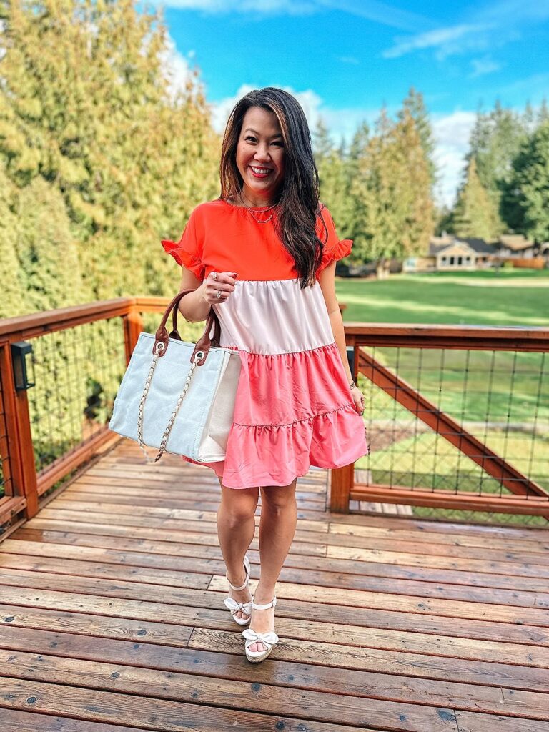 Overall, a great choice for a sunny Spring day out for brunch with friends. I love the pop of color with a fun bag or even colorful sneakers!