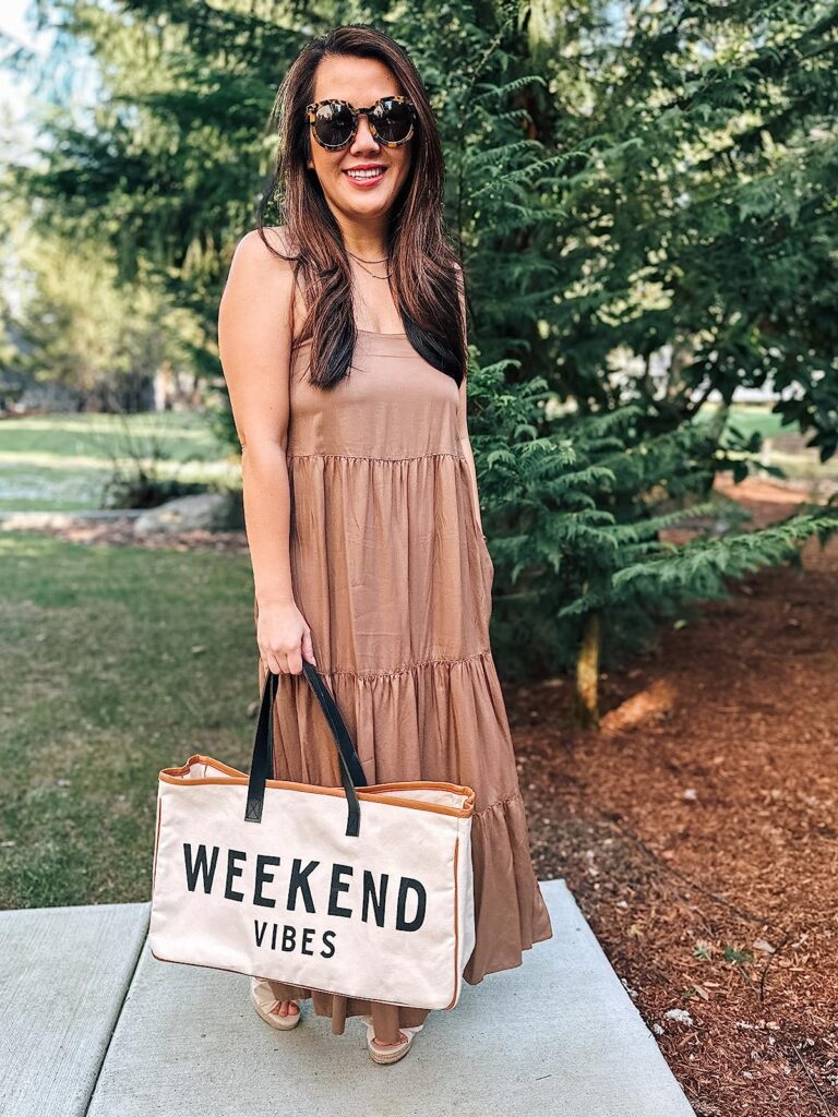Opt for a cute tote or a crossbody bag to complete the outfit. If you are in need of a light layer, you can thrown on a cute denim jacket or a knit cardigan.