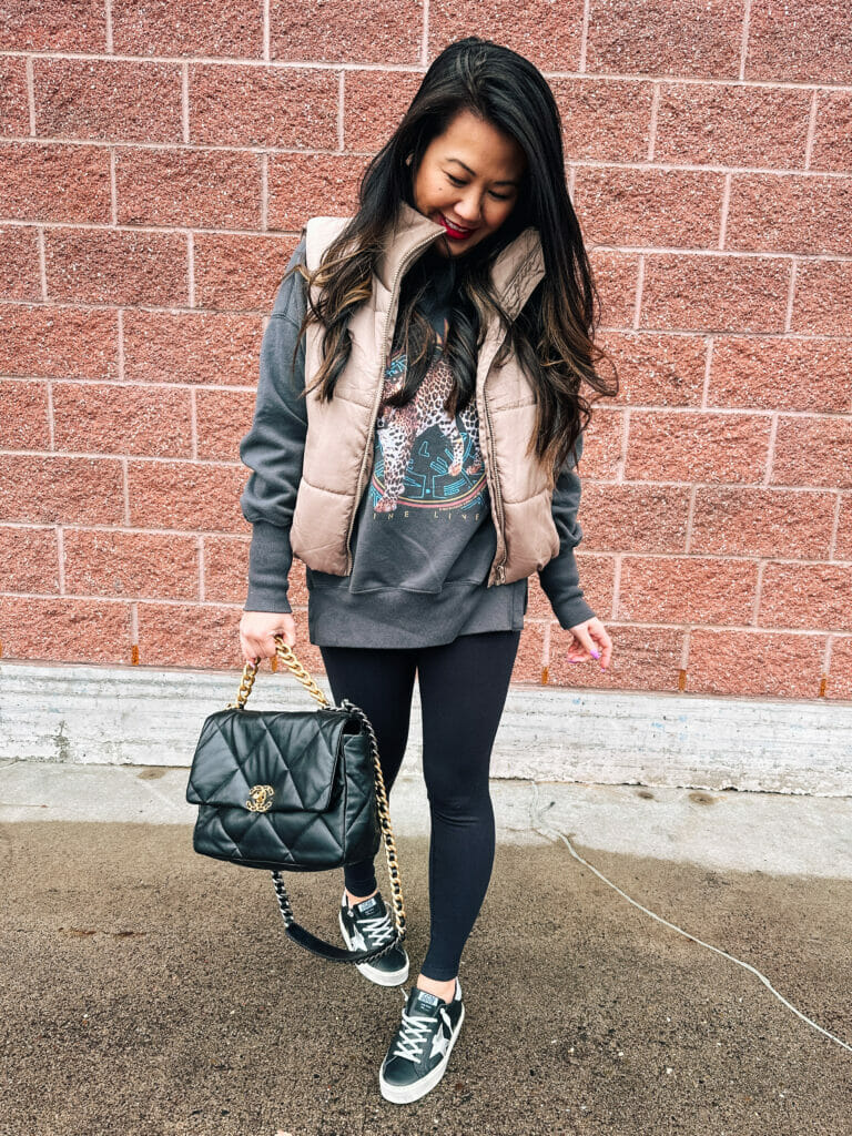 This ensemble is perfect for running errands, grocery shopping, or school drop off/pick up.