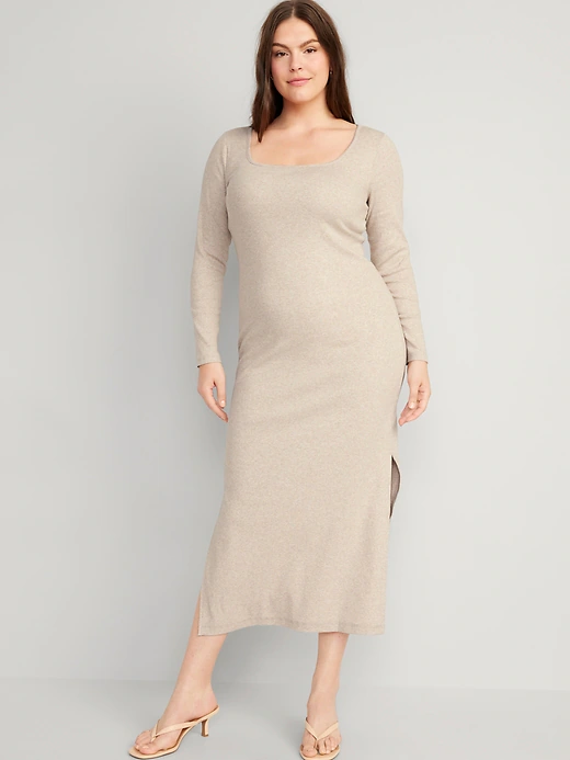 Fitted Long-Sleeve Rib-Knit Maxi Dress