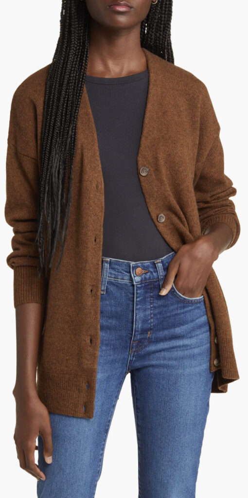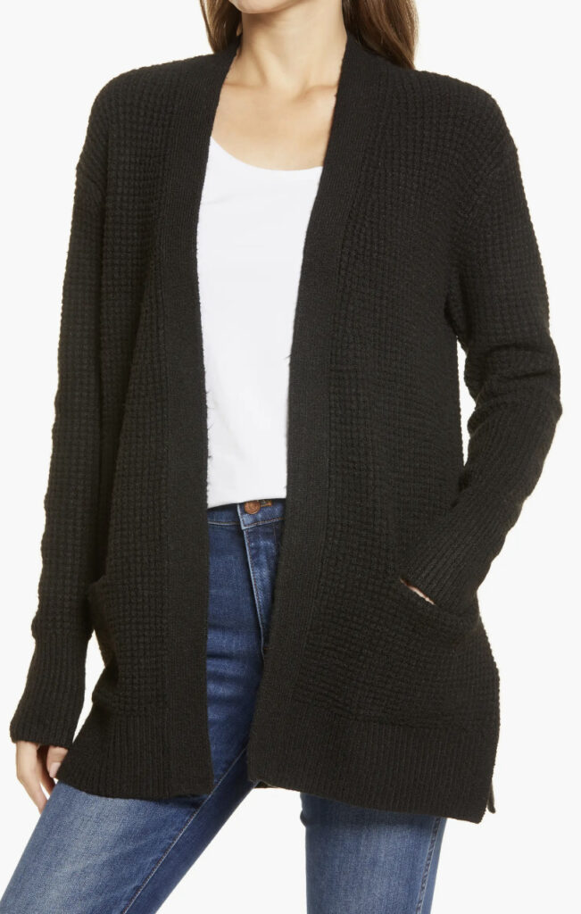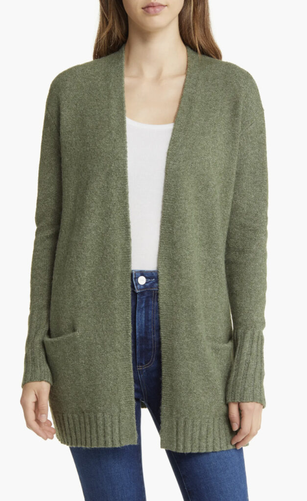 Open-front cardigans are a petite woman’s best friend. They elongate the body and create a sleek silhouette.
