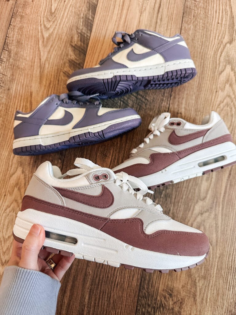 The Nike Dunk Low and Nike Air Max 1 are personally my favorite shoes for every day wear. They are both comfortable, trendy and go with everything. These style are some of Nike’s most popular styles!