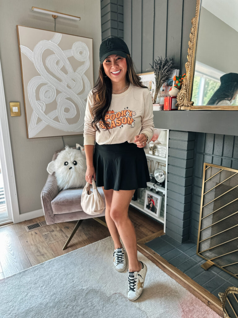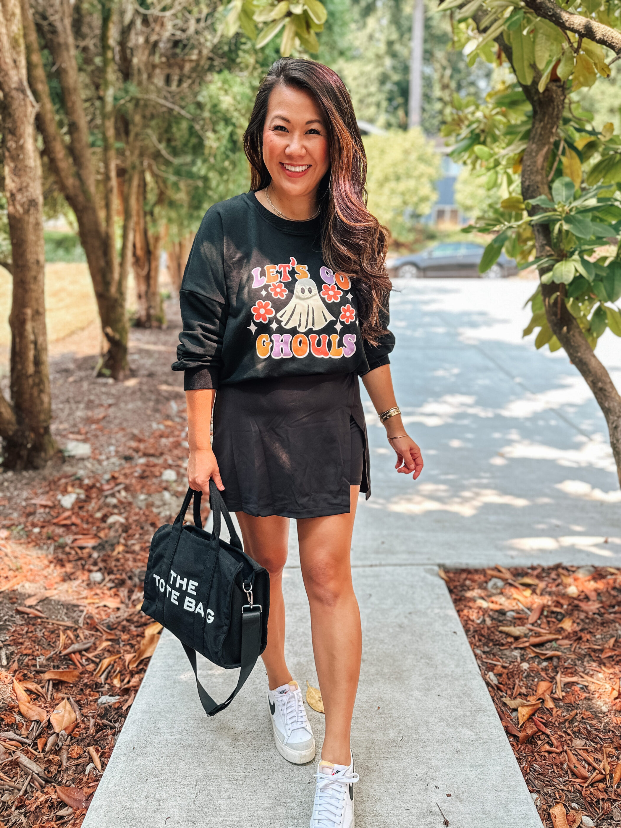 - How to Wear: Wear the sweatshirt oversized and layer with a denim jacket for those cooler October days.