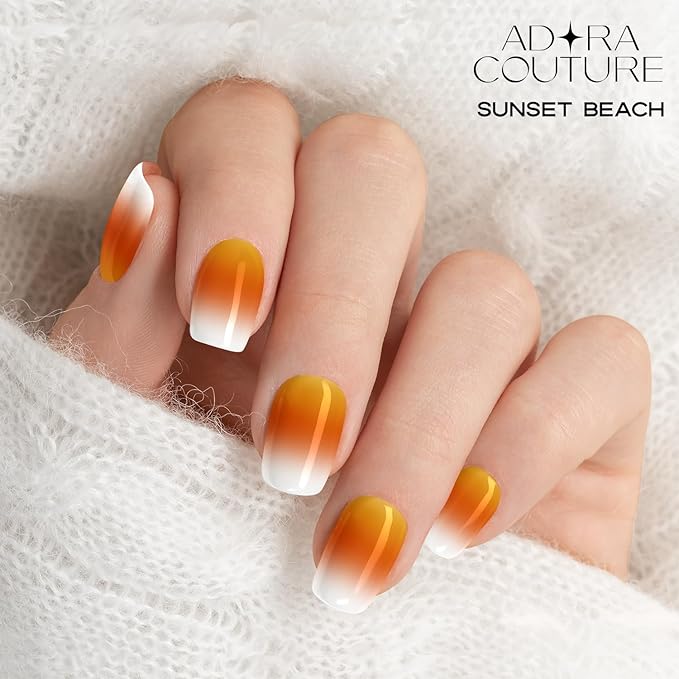 - Design: Candy corn stripes (white, yellow, orange) on the tips of each nail.