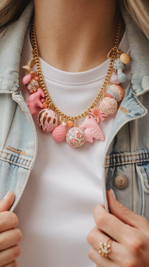 If you’re dressing up for a special occasion, go for a more intricate charm necklace featuring gemstones or bold, oversized charms. Pair it with a little black dress or a chic blouse to make a statement.